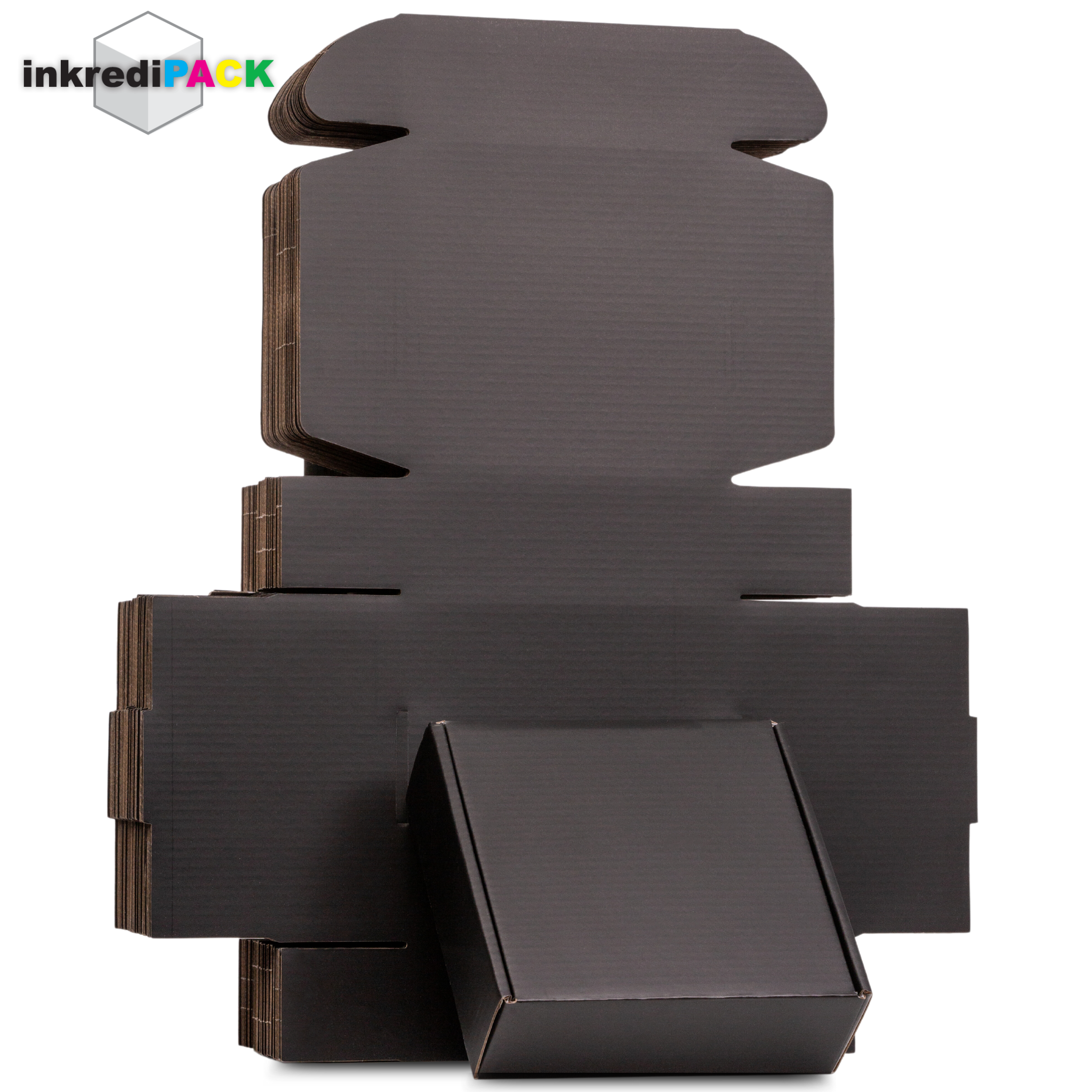 • InkrediPack™ Easy Fold Corrugated Black Matte Finish Mailer Boxes - 6"L X 4"W X 1.5"H - 50 Pack