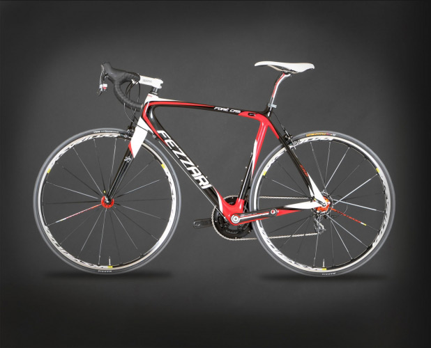 Take, for instance, the state of the art proprietary Fezzari Racing Design Xr7 3K monocoque carbon fiber frame. We used the highest grade of carbon fiber available on the market. We made it even stiffer laterally by enlarging the bottom bracket shell and adding the BB30 bottom bracket/crank design, strengthening the headtube and making it more laterally stiff by enlarging the diameter to a 1.5" tapered design. We've also enlarged the seatstays near the rear axle for more lateral rigidity. We made the Xr7 frame even more vertically compliant for those rides on the cobblestones. We've done this by using an oval design in our top tube and down tube.  The new Xr7 frame is even more aerodynamic than before with the new F4 ultralight bladed carbon fork and internal cable routing on the top tube.  The Xr7 frame was recently tested to be one of the most durable frames on the market, and it weighs a mere 900 grams. Strength, lightweight, rigidity where you need it most, and flexible enough to take the edge off of rough roads -- it's the perfect frame for anyone who wants to get the most out of their riding experience.
